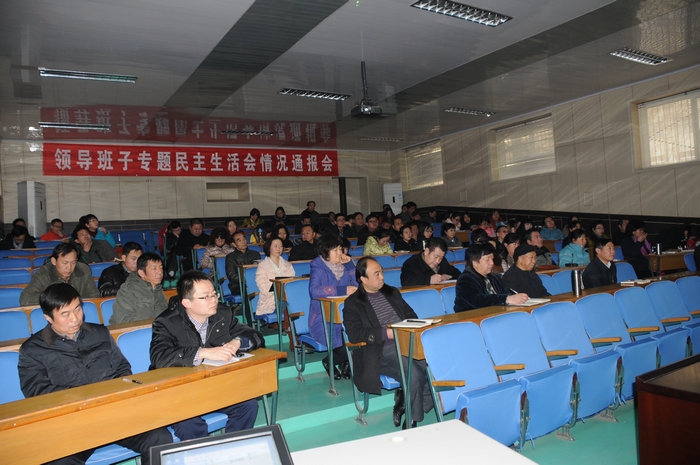 12月17日下午,学院召开大会通报党的群众路线教育实践活动领导班子专题民主生活会情况。全体党员、副科级以上干部、老干部代表、民主党派代表及学生代表参加了通报会。