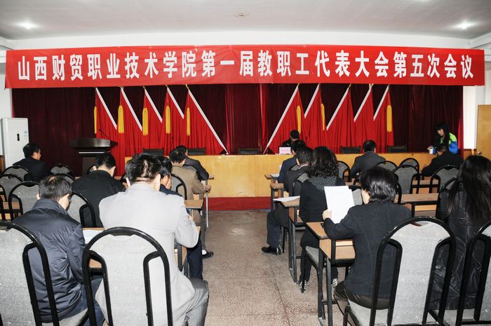 2013年10月16日14:00时,山西财贸职业技术学院第一届教职工代表大会第五次会议在学院多功能厅胜利召开,会议的主题是选举新的工会主席。