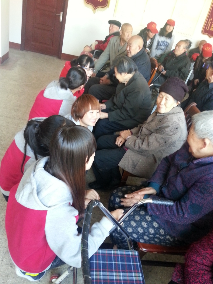 青年志愿者们满怀热情来到敬老院,为老人们义务服务,陪老人们聊天,并献上了丰富多彩的文艺节目。同学们热情高涨,演得用心;老人们心情愉快,看得开心。整个敬老院充满了融融的暖意,一派老少同乐的和谐景象。