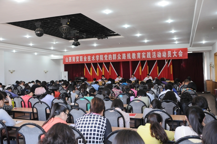 院党委书记李晋平在会上做了动员报告。李晋平在报告中就省高校工委党的群众路线教育实践活动领导小组第一督导组对我院教育实践活动的开展所做出的悉心指导和大力支持表示衷心感谢,同时代表学院党政班子向全院教师致以节日的问候!他表示学院将按照中央和省委的意见精神和要求,切实把党的群众路线教育实践活动组织好、开展好。他还介绍了自中央下发了在全党深入开展党的群众路线教育实践活动的意见以来,学院党委高度重视、周密安排,精心部署相关的先期工作,下发了《中共山西财贸职业技术学院委员会开展党的群众路线教育实践活动实施方案》,按照省高校工委、省教育厅党组的要求,与厅直属单位同步开展活动,为教育实践活动在我院的开展奠定了扎实的基础。我院将从8月份开始,开展为期3个月的教育实践活动。