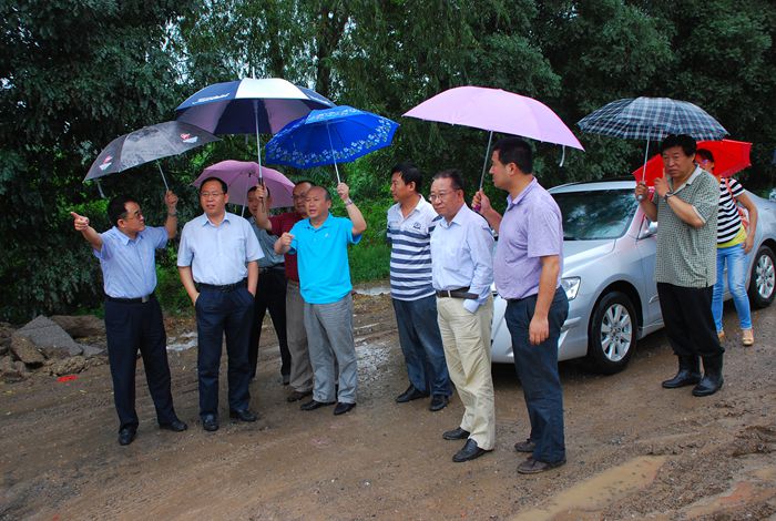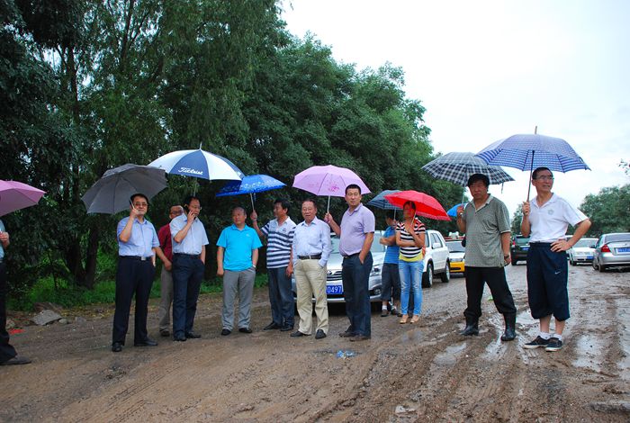 近日来连降大雨,学院道路出行困难和排污池溃坝险情再次突显,引起我院领导高度关切。院党委书记李晋平在7月9日降雨第一天就亲自向教育厅领导汇报这一情况,厅领导对此高度重视。7月10日清晨,教育厅副厅长级督学李秋柱、厅后勤管理处处长乔建华、小店区交通管理局局长阎文玉以及我院李晋平书记、张耀川副院长、院办、后勤处、保卫处负责人等一行,冒着大雨前往郑村涵洞和民航南路了解涵洞积水和道路阻断情况。李晋平书记向上级和有关部门领导详细介绍了我院长期以来存在的出行难和排污难问题,李秋柱督学当即与相关部门联系协商此事,阎文玉局长也立即表态,主动承担修通民航南路任务。