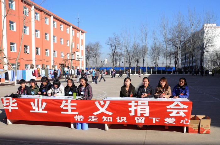 为了关爱贫困地区学生,弘扬“奉献、友爱、互助、进步”的精神,院团委与学生会于2012年11月15日~2012年11月26日联合举办了毕业生义捐会活动。