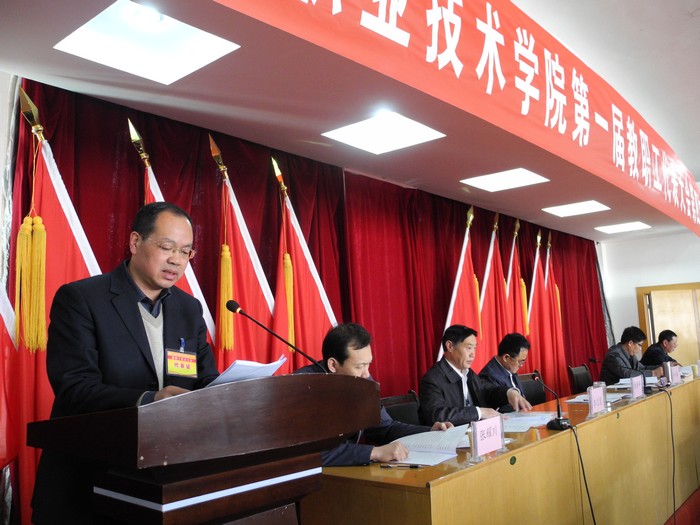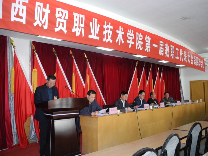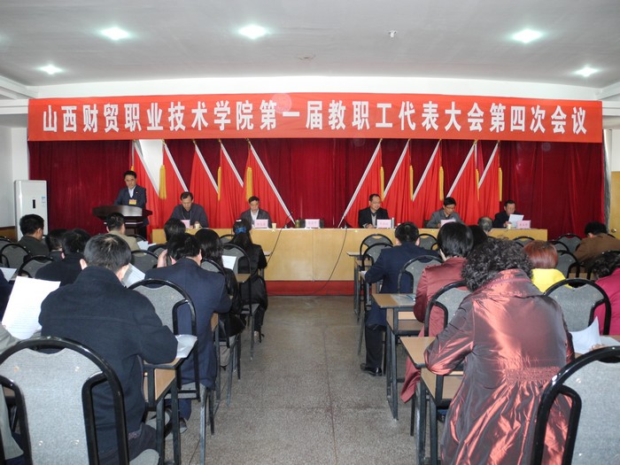2013年4月1日下午14:00,山西财贸职业技术学院第一届教职工代表大会第四次会议胜利开幕,学院领导李晋平书记、牛白琳院长、李志慧副书记、尤陶江副院长、张耀川副院长、特邀离退休老领导及全体教职工参加了开幕式。会议由李志慧副书记主持,学院党委书记李晋平致开幕词,牛白琳院长作了题为《积淀转化为成果,学院发展翻开新篇章》的学院工作报告,财务处长陈治山作了《山西财贸职业技术学院2012年财务决算和2013年财务预算报告》,工会主席李玉奇作了《山西财贸职业技术学院工会工作报告》,三个报告交由教职工代表进行讨论。