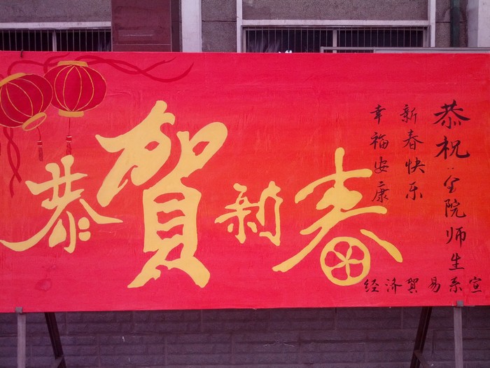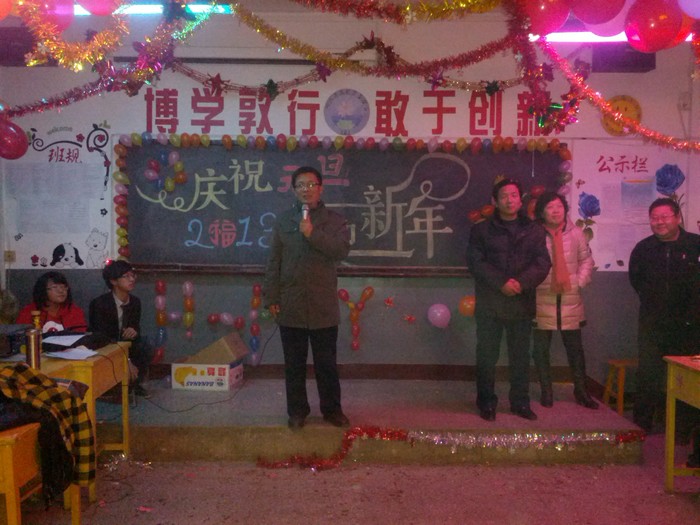 2012年12月27日晚,我院经济贸易系各班张灯结彩,欢聚一堂,与班主任一道举办了新年联欢会。院领导尤陶江、学生处处长崔景俭、系主任孙金霞、副主任李光伟等一行莅临各班并向各班带来新年的祝福和美好期望。他们表示在新的一年即将来临之际向同学们致以新年的问候,希望同学们在接下来的复习考试周能保持良好的学习氛围,预祝同学们在学期结业考试中取得优异成绩,以及将新年的问候带给家人祝他们新年快乐、万事如意!