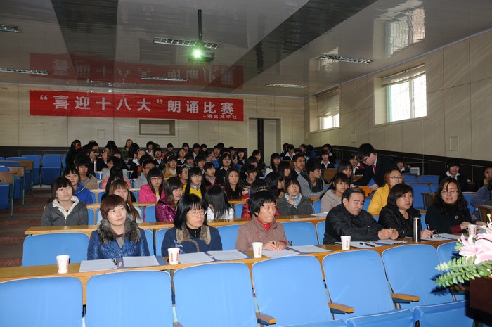 为喜迎党的十八大召开,深入学习宣传贯彻党的十八大精神,把全院团员青年的思想和行动统一到党的十八大精神上来,牢固树立热爱党、坚信党、忠于党的信念,院团委于2012年11月28日下午2:00在博学楼东阶梯教室举办了“喜迎十八大”朗诵比赛决赛。
