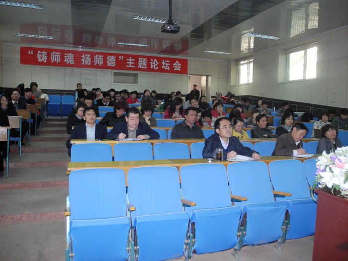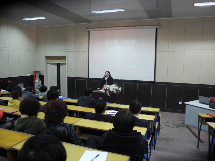 2012年10月24日下午2点整,在学院东阶梯教室召开了“铸师魂 扬师德”主题论坛会,学院领导李晋平书记、牛白琳院长、李志慧书记及全体专兼职教师参加了论坛会。论坛会由教务处处长雷桂萍主持。