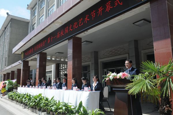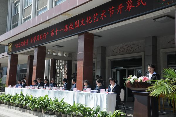出席本次开幕式的有院党委全体成员、学生处团委负责人、各系书记、主任和团总支书记。开幕式由副院长尤陶江主持,在雄壮的国歌声之后,院党委书记李晋平致了精彩的开幕词,他强调了校园文化的重要性,并希望同学们在共青团建团九十周年,我院力争创建省级示范院校,深入开展“强三风 提四力”主题活动之际,积极参与艺术节的各项活动,在活动中自觉培养人文精神和艺术气质,全面提高文化素养,提升文化品质,促进文明建设,营造良好的校园文化氛围,推动我院校园文化事业的蓬勃发展。接着,院团委书记马娟宣读了本届校园文化艺术节的活动方案以及相关事宜。随后,学生代表韩娜发言,她号召同学们要积极参加活动,赛出成绩,赛出水平,展现聪明才智,展示才艺特长,努力提高自己的综合素质。最后,院长牛白琳宣布第十一届校园文化艺术节正式开幕。