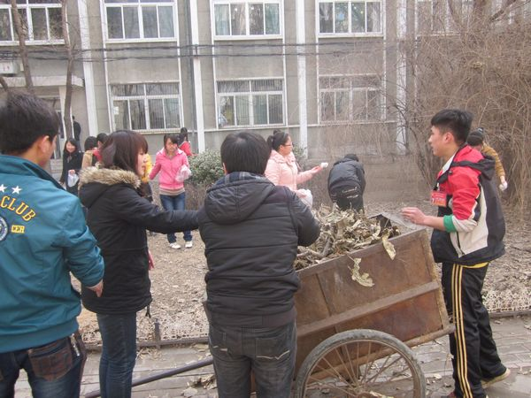 3月5日下午,院团委、院学生会、各系团总支、各系学生会以及各班团支部开始了清洁校园大行动。同学们积极参与,分工合作,清理了学院博学广场、大操场、大礼堂、阶梯教室及花池、橱窗。此外,同学们还清洗了校车,健身器材,将雷锋精神遍布了财贸校园的每个角落。当天下午三十余名青年志愿者还到煤机社区为老干部清理住宿卫生及活动室,展现了当代大学生尊老爱幼的优良品质。