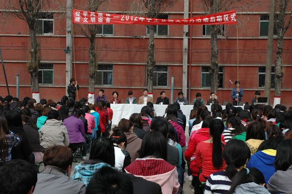 2012年3月28日下午两点,我院“促学风建设 争创文明宿舍月”活动启动仪式在学生宿舍楼前举行,尤陶江副院长、崔景俭处长、吴艳东科长、各系副主任、班主任以及100多名宿舍长代表出席了会议。
