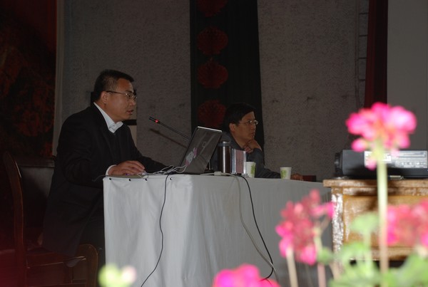 山西省工商行政管理局直销监管处处长郭新安在学院大礼堂为学生做题目为“防止传销进校园”的宣传教育活动知识讲座