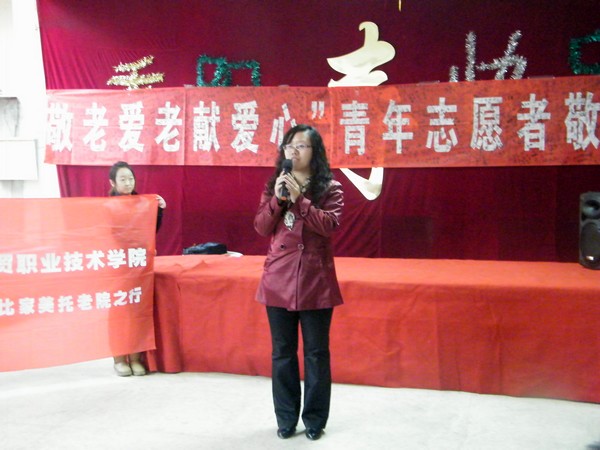 活动期间,太原市比家美托老院的杨院长对同学们的到来表示热烈的欢迎和衷心的感谢。她提议青年志愿者们将比家美托老院作为活动基地,与老人们结对子,并希望越来越多的志愿者们加入到关爱老人这一行动中,让越来越多的老人感受到来自社会的关爱。院团委书记马娟的讲话带去了全院师生的祝福,并对青年志愿者们提出了希望---在关怀自己的老人的同时,能够关注社会上更多的孤寡老人,予人温暖与关怀,继续发扬这个延绵千年的传统美德。