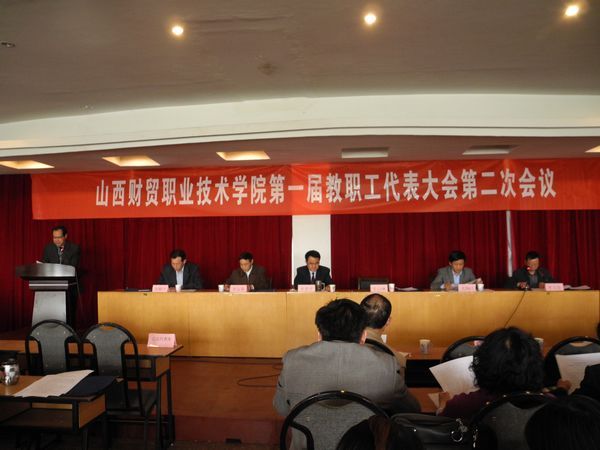 2011年4月25日下午14:00,山西财贸职业技术学院第一届教职工代表大会第二次会议胜利开幕,学院领导李晋平书记、牛白琳院长、李志慧副书记、尤陶江副院长、张耀川副院长、特邀离职老领导及全体教职工参加了开幕式。会上,按照会议议程安排,由李智慧副书记致开幕词,牛白琳院长作题为《夯实基础 深化改革 再创发展新局面》的2010年学院工作报告,尤陶江副院长作《山西财贸职业技术学院“十二五”规划》的起草说明报告,财务处陈治山处长作《山西财贸职业技术学院2010年财务决算和2011年财务预算报告》,工会李玉奇主席作《山西财贸职业技术学院工会工作报告》,最后由李晋平书记做重要讲话。