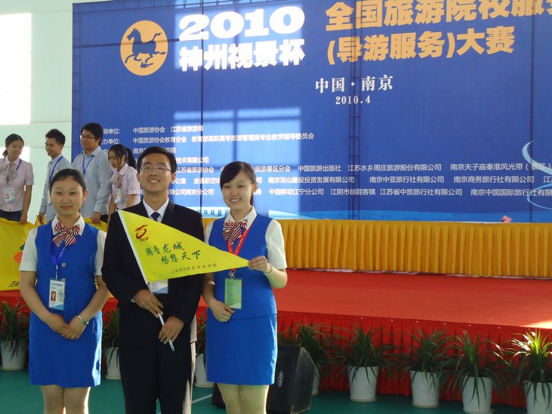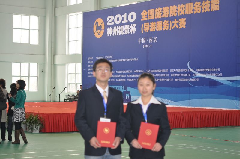 4月25日,由中国旅游协会、教育部高职高专旅游类专业教学指导委员会主办,南京旅游职业学院承办的第二届全国旅游院校服务技能(导游服务)大赛在六朝古都南京落下帷幕。来自全国26个省、市、自治区的218所学校的600多名选手参加了比赛。我院旅游系派出了由张志宇老师任领队的参赛队伍,两名旅游管理专业的选手参加了高校组普通话导游项目。在比赛中,他们表现出色、稳定发挥,经过与全国各知名院校的旅游管理、导游专业学生的激烈竞争,最终旅游071王洋同学获得了二等奖、赵媛芳同学获得了三等奖。在第一次参加全国大赛就取得了这样的好成绩,充分展现了我院学子的风采。