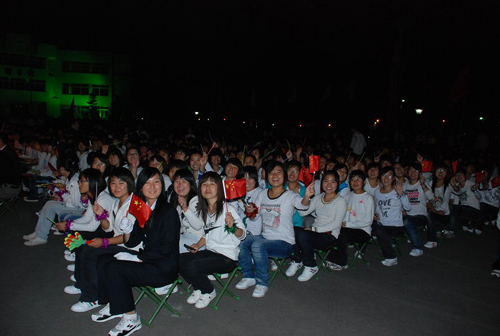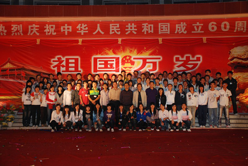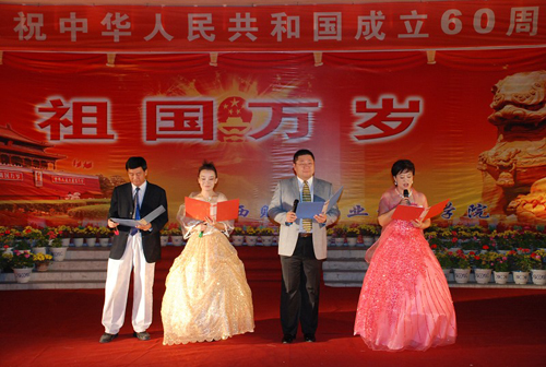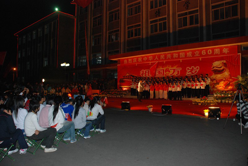 为庆祝新中国成立60周年,教育部要求在全国大中小学校开展“祖国万岁”歌咏活动,学院对此高度重视,以党团组织为单位广泛开展了“祖国万岁”歌咏活动。活动要求:1、由各党总支(支部)组织发动全院师生学唱爱国歌曲。2、各系党总支负责组织本系所有新生班参加歌咏活动,要求以系为单位,组成百人方阵选唱一首爱国歌曲。3、各系党总支选拔1-2个优秀教工节目(独唱、二重唱、小合唱、大合唱)参加此次歌咏活动。2009年9月28日晚7点在学院博学广场举办了“祖国万岁”大型歌咏晚会,全体师生参加了晚会,规模宏大,场面热烈,充分展示了广大师生昂扬向上、朝气蓬勃的精神风貌,营造出浓厚的节日喜庆氛围和良好的校园文化环境。