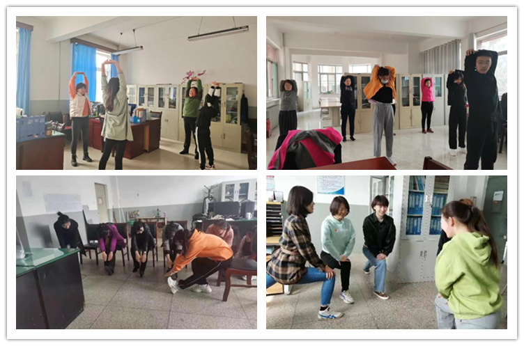 在会计系团委书记王亚亮老师的带领与指导下,会计系健身指导小组展开雷锋月志愿服务活动。志愿者们走进办公室,带领老师们进行课间锻炼:放松胸背肌肉、伸展腿部肌肉、颈部静态拉伸、胸肩拉伸、扣手肩外展、静态拉伸大腿前侧等。这次健身指导志愿活动帮助老师们缓解了压力和疲惫,并保持愉悦的心情,得到了各系老师们的认可。