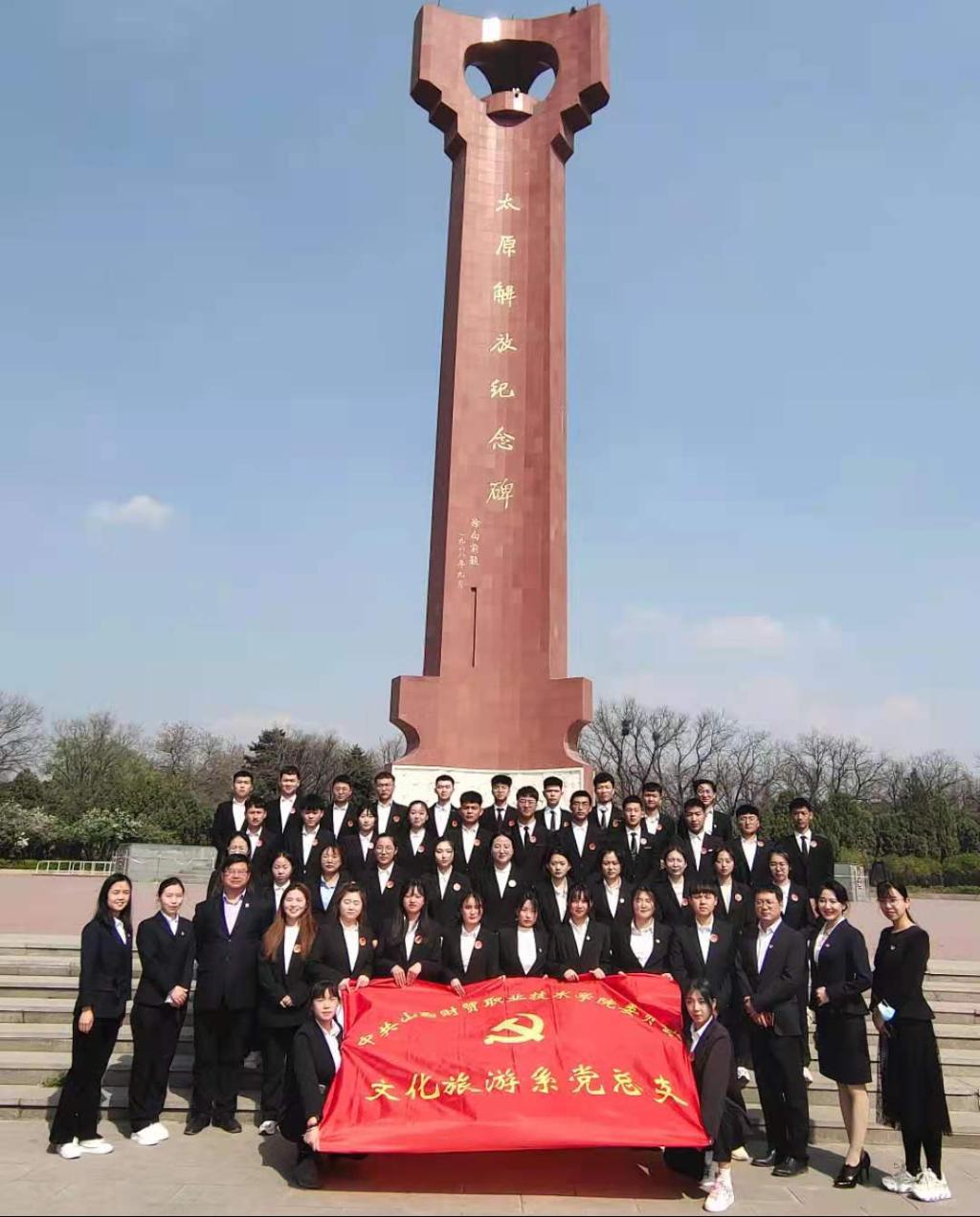 2021年4月20日下午,文化旅游系全体党员、预备党员、入党积极分子共51人,赴太原解放纪念馆开展了“游一个红色景点 讲一段红色故事 ”将党恩永记心间的红色实践教育活动。在4月24日太原解放纪念日即将到来之际,同志们缅怀了革命烈士、重温了入党誓词、唱响了红歌、参观了太原解放展览馆、分享了解放太原战役故事、当起了景区志愿者,从党的奋斗历程中汲取了精神力量。