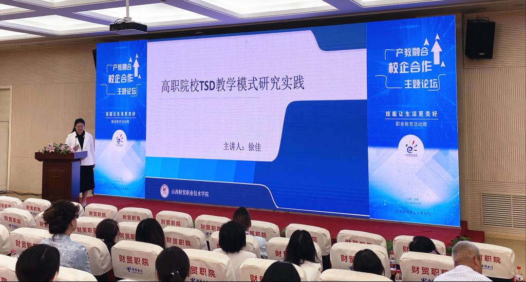 我院科研与质量监控中心主任徐佳就《高职院校TSD教学模式研究实践》和教师们做了分享。从TSD教学模式介绍和成果主要解决的教学问题等四方面做了报告,构建了以“任务元”为核心的结构,教学成果凝结了新技术、新岗位、产教融合人才培养新方向。