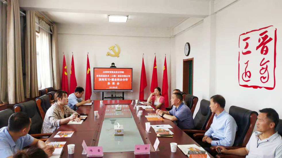 张院长向企业代表介绍了学院办学历程和2022届毕业生基本情况,并就如何在产教融合、校企合作模式下培养出高素质高技能人才,以促进学生高质量的就业与企方进行了交流,同时就企业核心业务、运营模式、科研能力、业内排名等方面进行询问和了解。经贸系、校企合作培训部及学生处相关负责同志与企业就学生心理疏导、学生安全、深度校企合作方式等问题进行了洽谈。