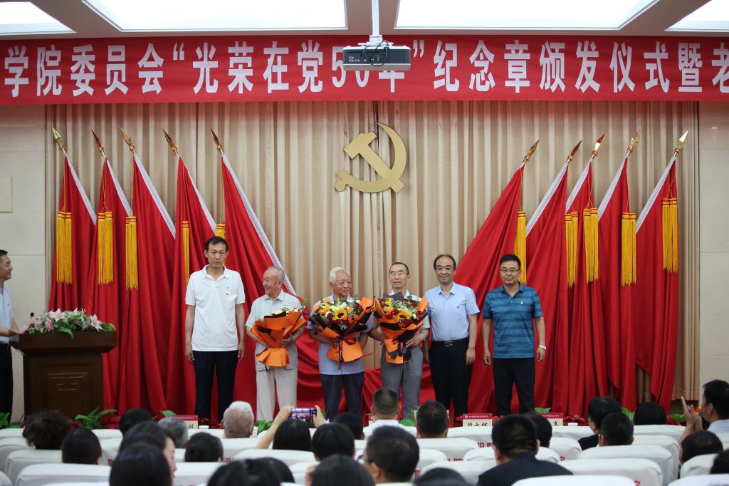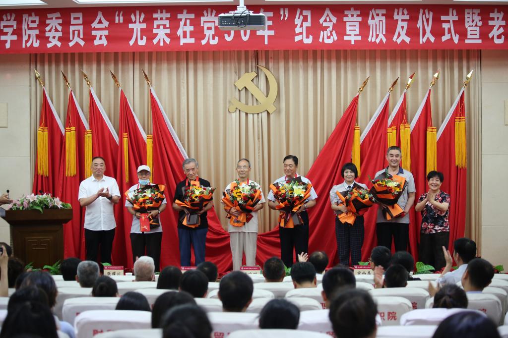 百年征程波澜壮阔,百年初心历久弥坚!在迎接中国共产党成立100周年之际,6月28日下午,我院在砺志楼大报告厅举行“光荣在党50年”纪念章颁发仪式暨老党员、老干部慰问活动。院领导班子成员出席活动,荣获“光荣在党50年”纪念章的老党员、部分老党员家属代表及老干部,全体党员参加了活动。活动由党委副书记徐旭宁主持。