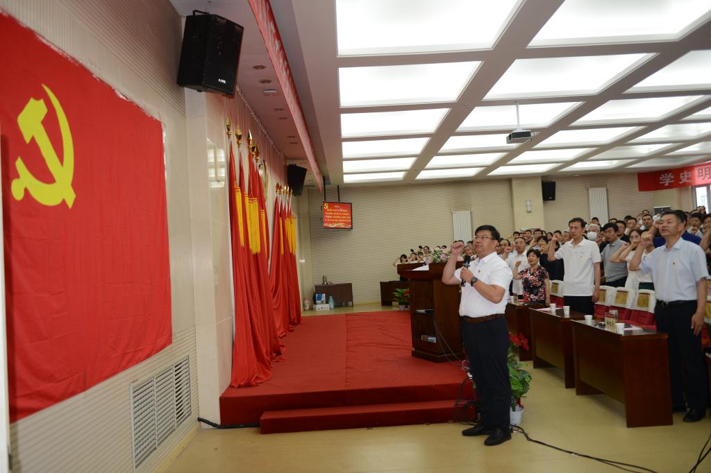 面向党旗,组织部部长葛建军同志带领现场全体共产党员重温入党誓词。同志们声音铿锵有力,深刻诠释了“入党一生一次,在党一生一世”的终生诺言。