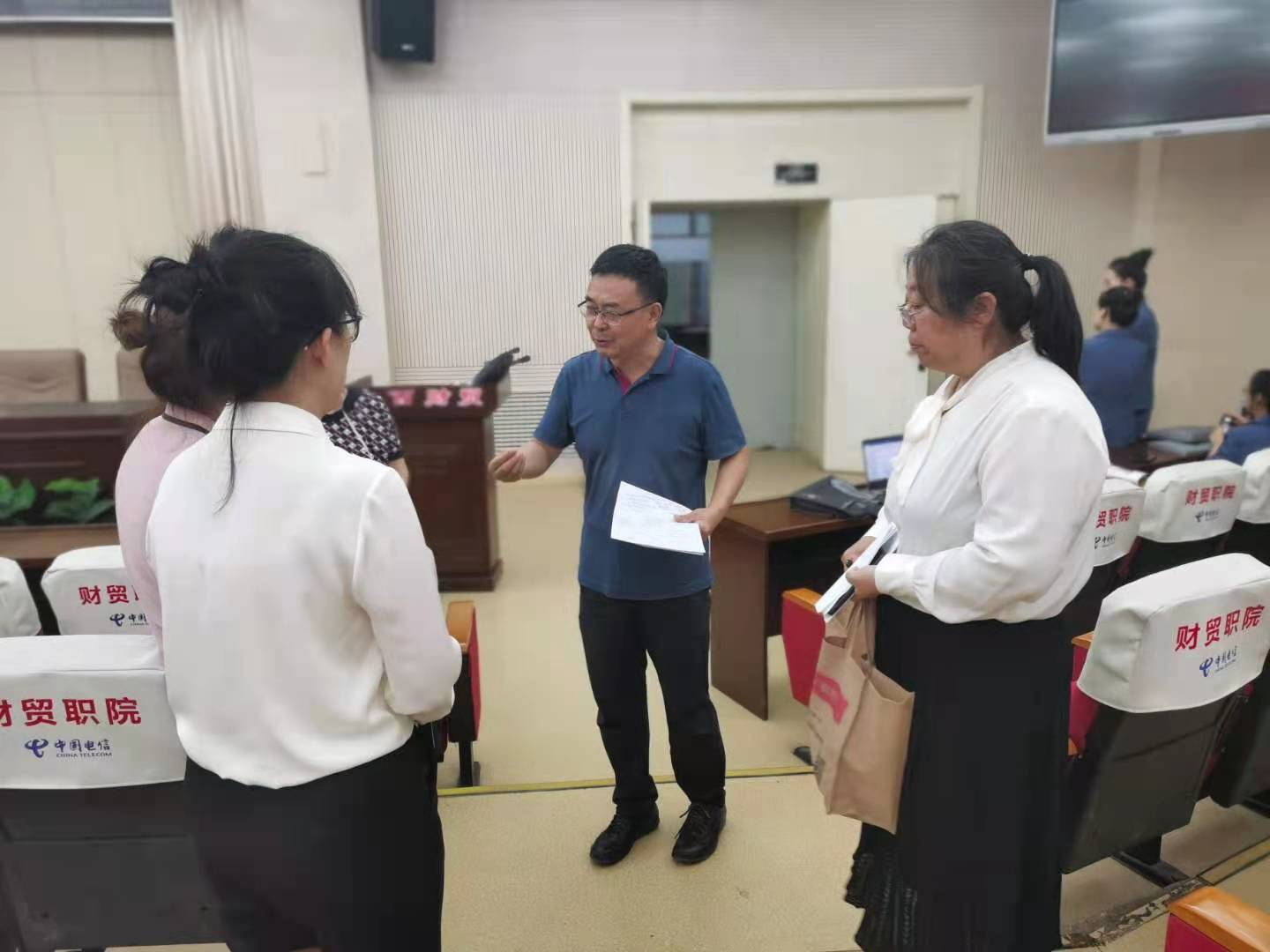 模拟答辩会邀请了全国教学能力大赛国赛评审专家张利教授、杨颖教授担任评审专家。校内模拟答辩会严格按照省赛要求,公共基础部、会计系、思想政治理论教学部、文化旅游系的4支参赛团队依次按照小组抽签、备赛、教学实施汇报、课堂展示、专家提问、回答问题、专家点评的答辩全流程进行。