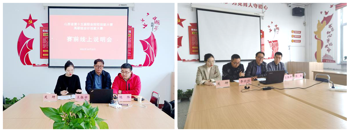 10月12日下午及10月13日上午,山西省第十五届职业院校技能竞赛(高职组)会计技能、智能财税赛项说明会在我院召开。本次会议借助腾讯会议进行,会计系主任王振中、教务处综合办公室主任李欣欣、新道科技股份有限公司经理陈阵、厦门网中网软件有限公司经理林少敏、中联集团教育科技有限公司经理张凯及各参赛团队代表参加了会议。
