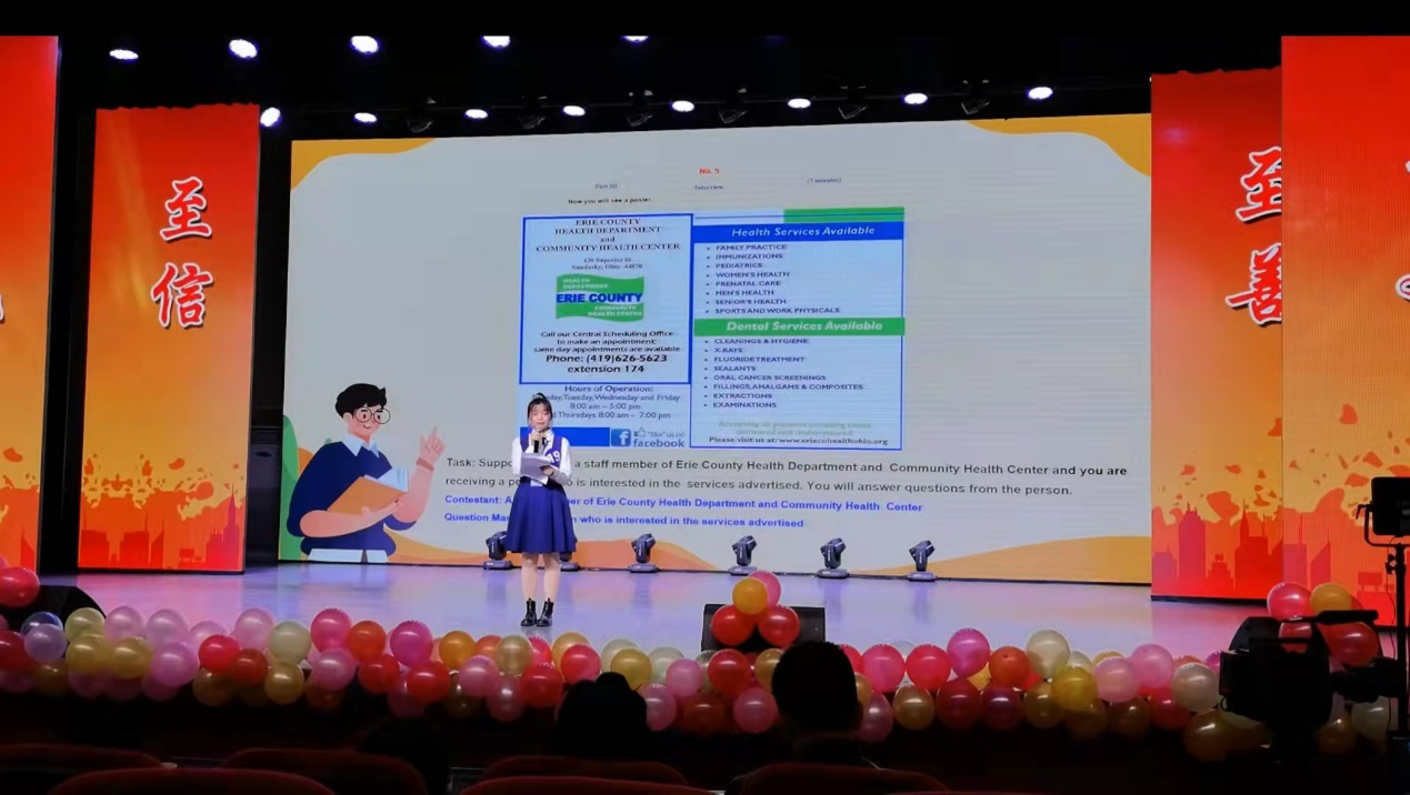 英语口语比赛是英语综合教学水平的一次证明,通过比赛来激发学生学习英语的动力。2020年11月,经过层层角逐,刘玮璐同学从众多选手中脱颖而出,作为参加2021年第十五届职业院校技能大赛高职组英语口语大赛的选手。在接下来紧张忙碌的备赛阶段,在英语教研室的精心筹划下,制定了日常训练计划,通过听、说、读、写等方面来夯实选手的英语基础,同时通过对话题作文的背诵,并且自主撰文来积累口语素材,不断讨论修改完善,力求句式精炼,表达精准,如此坚持了一个学期,而且寒暑假还利用线上视频和电话交流的方式继续训练。到了2021年10月最后冲刺阶段,英语教研室老师们齐心协力集思广益,模拟了多个不同的练习场景来锻炼选手的临场反应能力以及赛场的心理素质。最终,在比赛中一举夺冠。