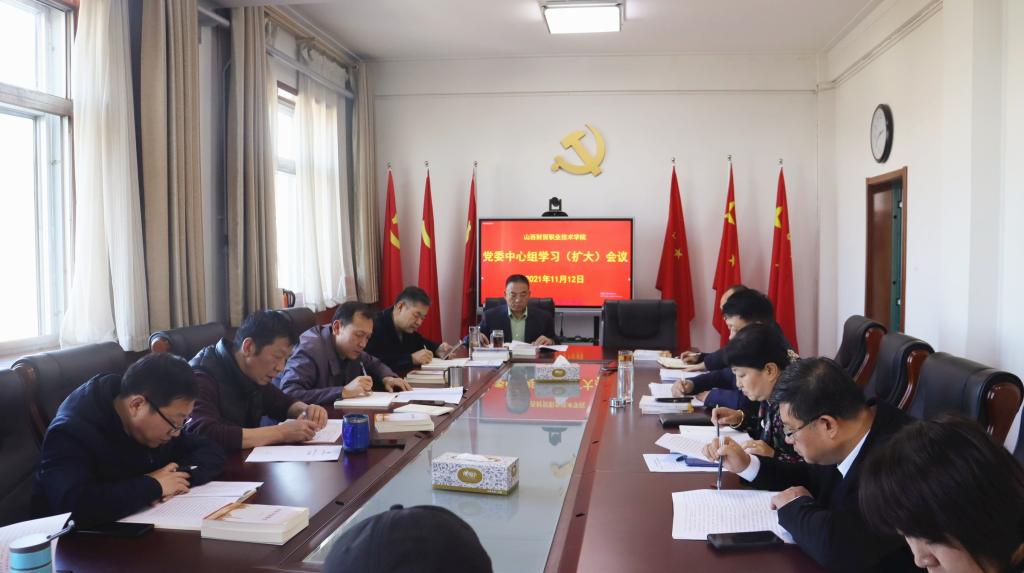 11月12日下午,我院在勤政楼四楼会议室召开党委中心组(扩大)学习会议,集体自学中国共产党第十九届中央委员会第六次全体会议公报和《社会主义发展简史》部分内容。全体院领导、各党总支书记以及相关部门负责人参加了会议。会议由党委书记冯瑞明同志主持。