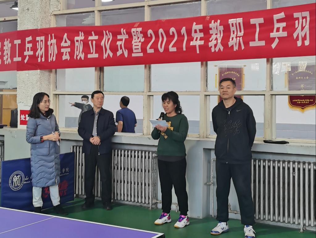 2021年11月8日,我院教职工乒羽协会成立,随后“乒羽个人单项赛”拉开了序幕。开幕式由院工会主席丁冠卬主持,当选会长张建梅作了表态发言,党委副书记徐旭宁发表了热情洋溢的致辞。