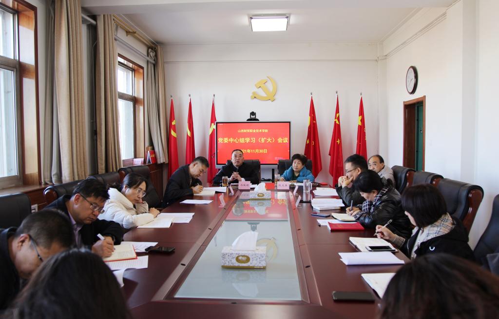 11月30日下午,我院在勤政楼四楼会议室召开党委中心组(扩大)学习会议,集体学习《改革发展简史》。全体院领导、各党总支书记以及相关部门负责人参加了会议。会议由党委书记冯瑞明同志主持。