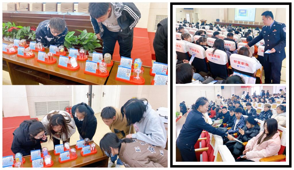 许主任强调“珍爱生命 远离毒品,是最基本的禁毒教育理念;识毒拒毒 远离诱惑,是第二层级禁毒教育目标;禁绝毒品 远离犯罪,是禁毒教育的终极目标”。随后他给学生讲解了新型毒品的概念界定以及类型,并从“学会识别,认清危害,健康生活”三个方面解析了大学生如何预防新型毒品。接下来,现场学生在曹警官的组织下有秩序的参观了仿真毒品样本,并对学生提出的一些问题进行了一一解答,提高了学生对于毒品的识别能力。最后许主任和曹警官给在座的学生分发了毒品预防宣传册。