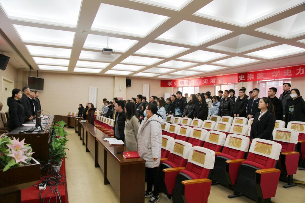 会计2005班师鑫鑫同学代表学员发言,表示将认真上好每一堂课,深入学习党的光辉历史与先进思想,以合格党员的标准严格要求自己,通过培训提高自己的党性修养,锻炼自身的品德意志。