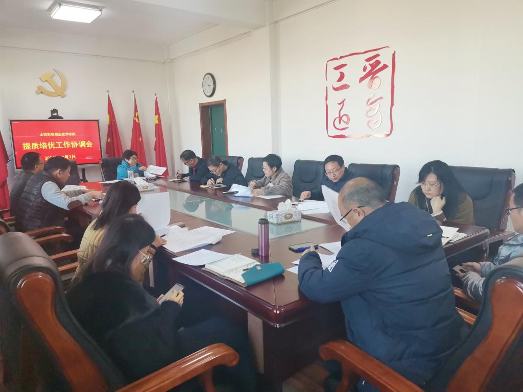 2021年12月3日下午,我院在勤政楼四层会议室召开“提质培优”项目专题推进会议,同时还对我院学籍学历注册清查工作以及疫情防控工作做了安排部署。段文美院长、富伯亭副院长及提质培优行动各项目牵头部门负责人参加了会议,会议由富伯亭副院长主持。
