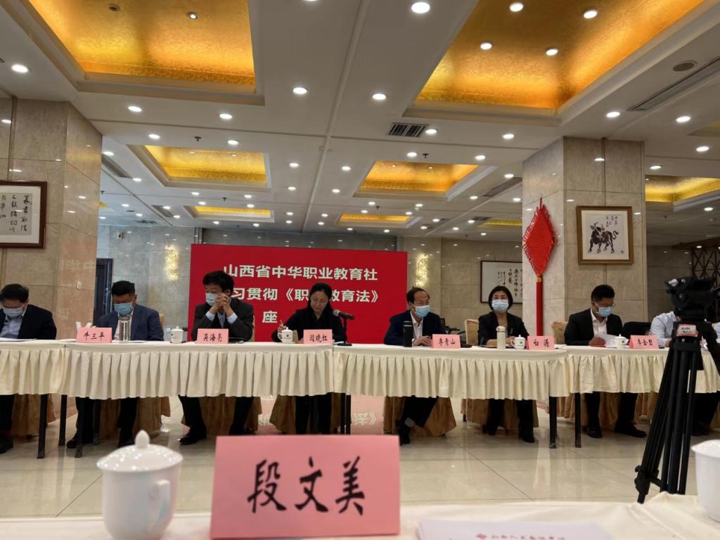 5月6日,山西省中华职业教育社召开学习贯彻《中华人民共和国职业教育法》座谈会。省政协副主席、九三学社山西省委会主委、省职教社主任李青山,省委统战部副部长白源出席并讲话。省教育厅副厅长李金碧、省人社厅副厅长吴海亮对《职业教育法》进行了解读,四名第七届黄炎培职业教育奖获奖单位代表及个人作了交流发言。我院院长段文美代表学院作为全省受邀的5所高职院校之一参加了座谈会。