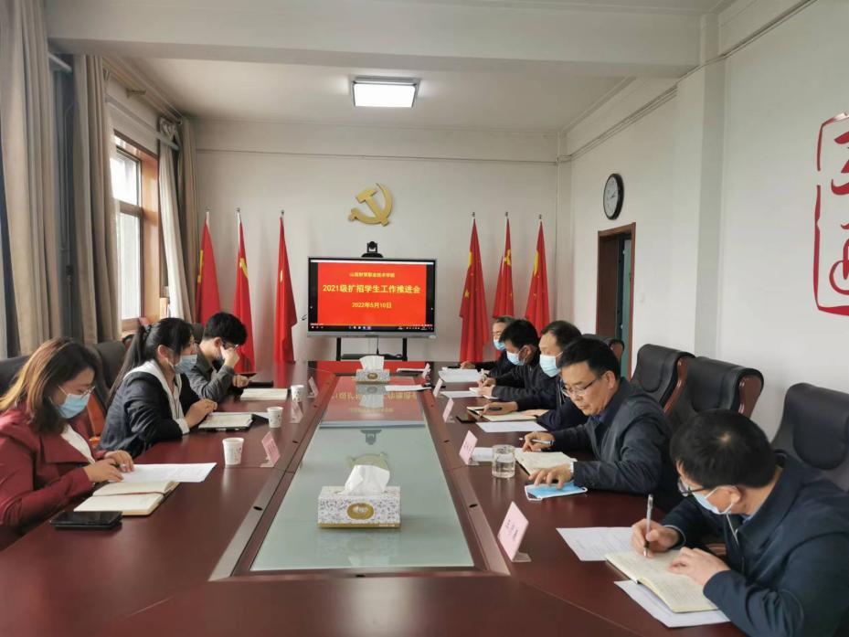 为进一步深化校企合作,做细做实2021级扩招学生教学管理、学生管理、疫情防控等各项工作,2022年5月10日上午9:00,我院在勤政楼四楼会议室召开2021级扩招学生工作推进会。张耀川副院长、学院党政办公室、教务处、学生处等部门负责人以及山西立德教育集团教学、校企合作等业务负责人参会,会议由富伯亭副院长主持。