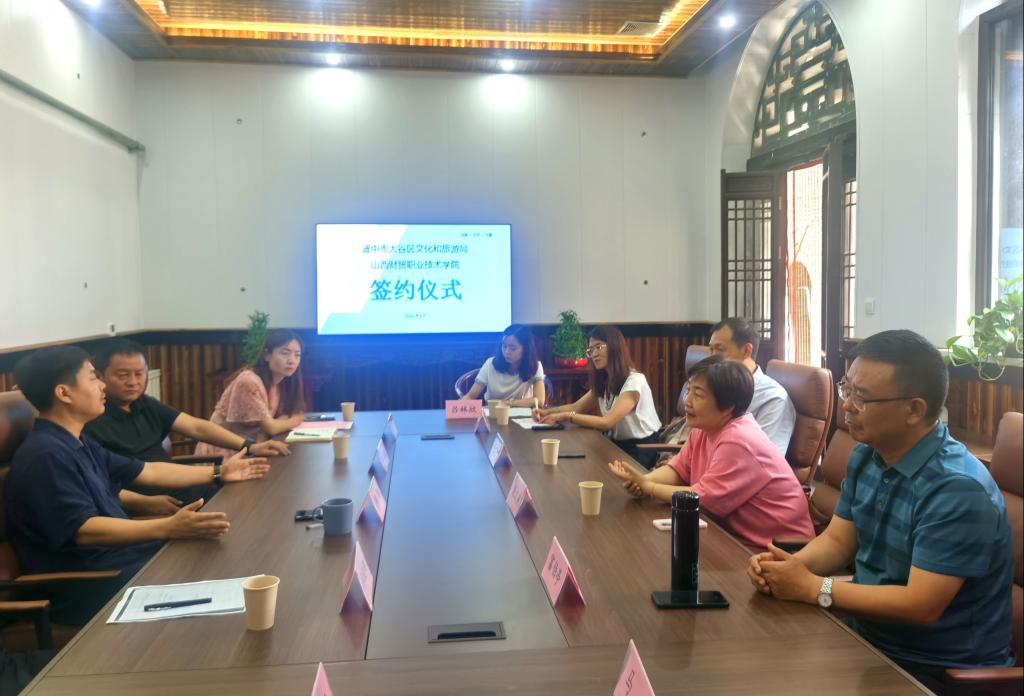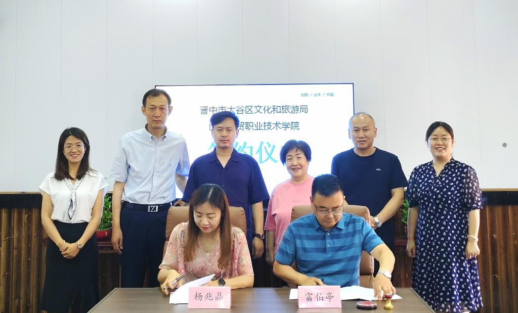 6月23日上午,山西财贸职业技术学院与晋中市太谷区文化和旅游局政校文旅合作协议签约仪式顺利举行。太谷区政协副主席、文化和旅游局局长周锋,太谷区文化和旅游局党组书记郝俊刚,我院院长段文美、副院长张耀川出席签约仪式。太谷区文化和旅游局副局长杨兆晶、我院副院长富伯亭代表双方签署合作协议。太谷区教育局党组书记、局长韩卫政及太谷职中党总支书记杜建瑨受邀出席,我院文化旅游系书记马娟、系主任王雪娟及相关人员参加了此次签约仪式。