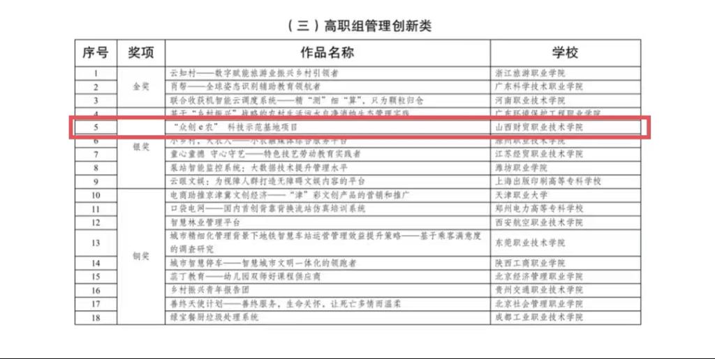 近期,由团中央主办的第十七届“振兴杯”全国青年职业技能大赛(学生组)创新创效专项赛决赛获奖名单揭晓,我院由梁越月、范文涵老师指导,高星星、李雨泽等同学的创新创效项目《“众创e农”科技示范基地》作为山西省唯一入选国赛决赛项目荣获“银奖”,这是我院继2020年《星语星程——“大学生社群+公益”精准关怀自闭症儿童》项目在第十二届“挑战杯”中国大学生创业计划竞赛中荣获“铜奖”后的又一次新的突破。
