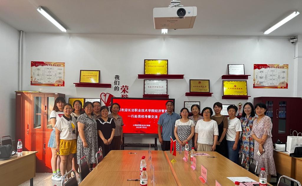 2022年7月8日,长治职业技术学院经济管理系张春光主任带队,系副主任朱丽娜、会计教研室主任郭恒溪、电子商务教研室主任王婷婷以及骨干教师李春梅老师等一行9人来我院进行交流调研。我院会计系主任王振中、会计系副主任杨卫、牛艳,大数据与会计专业教研室主任安红梅以及骨干教师赵淑琪、关坤老师参加了交流座谈。
