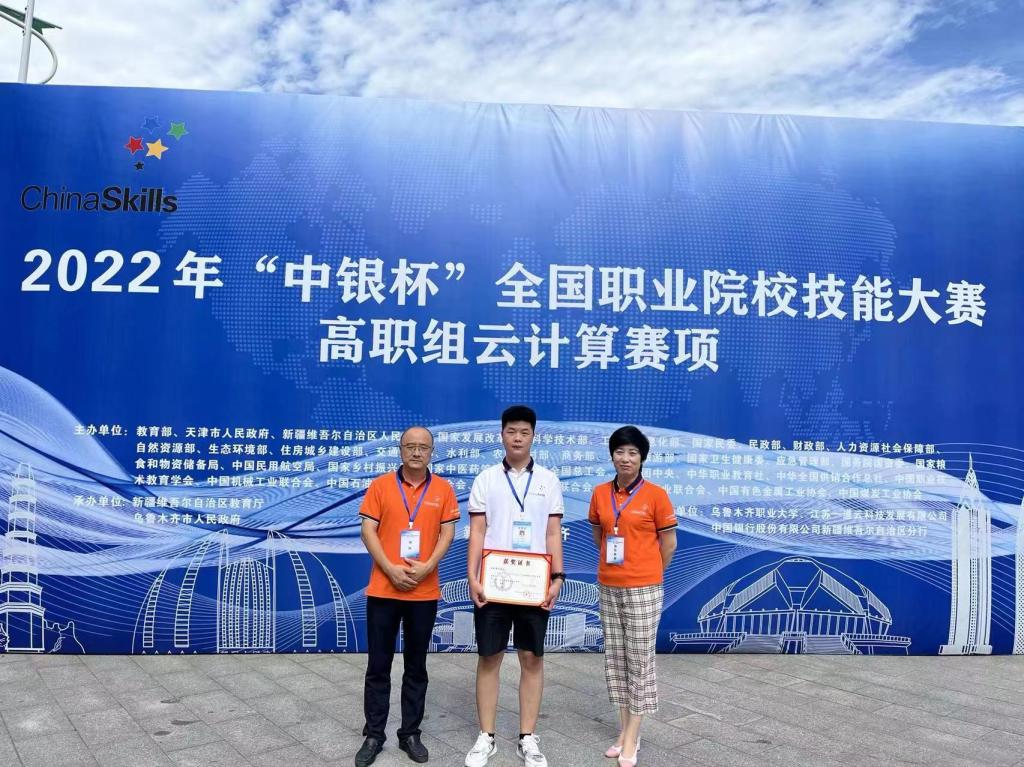 8月1日,2022年“中银杯”全国职业院校技能大赛高职组云计算赛项在新疆乌鲁木齐职业大学拉开帷幕,我院由物联网技术系主任王雅静带队,指导教师陈艳和参赛选手薛硕参加该赛项。经过3天18个小时的激烈角逐,薛硕同学从来自全国各地的59名参赛选手中脱颖而出,取得了第25名的好成绩,获得了三等奖,实现了我院在该项赛事上的又一次突破。