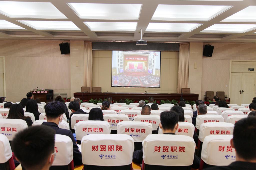 全院师生员工热切关注大会盛况。10月16日上午,学院领导班子成员、各单位党政负责人、党员代表、教职工代表、学生代表在励志楼大报告厅收看大会开幕会实况,切实把握十九大以来取得的建设成就和国家未来发展蓝图,深刻领会报告内涵与意义。全院各级党组织采取线上线下相结合的方式,积极组织广大党员干部和师生员工收听收看大会开幕会,及时、全面、准确学习领会大会精神。在博学广场,部分学生代表集体观看开幕会直播,跟随习近平总书记的讲话,同学们全程认真聆听、深切感悟、交流心得。