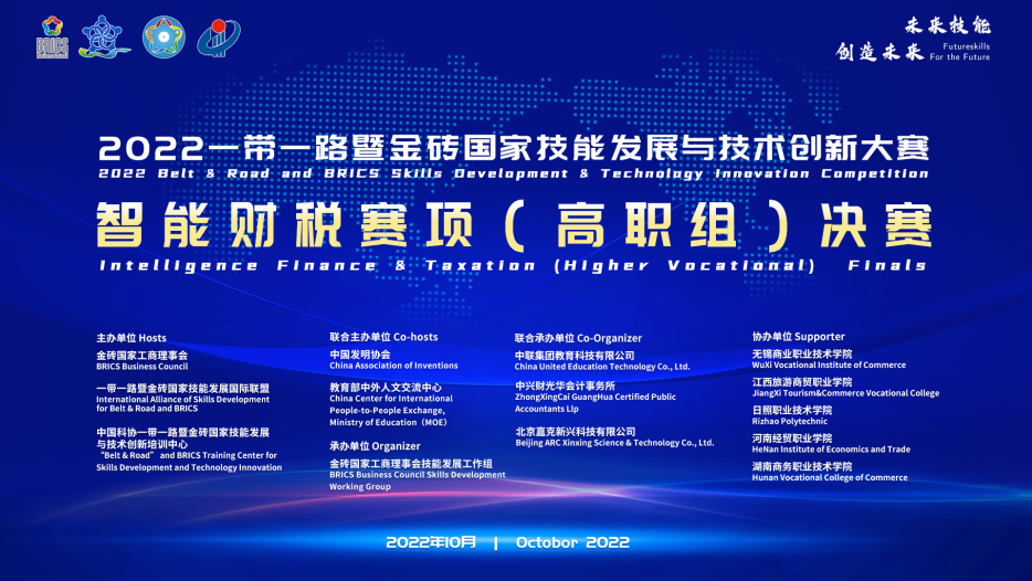 2022年10月15日,“一带一路”暨金砖国家技能发展与技术创新大赛智能财税赛项(高职组)全国总决赛通过“线上+线下”的形式开展。此次比赛分为初赛和决赛,我院会计系宋雪羽、关坤老师指导的尹晓婷、李子怡、郭丹、刘玲孜四名选手以初赛区域赛第一名的好成绩进入决赛,经过一天的激烈角逐,在决赛中团结协作、沉着应战,最终斩获团体一等奖!王旭敏、张佳宁、吴新爱、刘夏四名选手获区域赛二等奖。