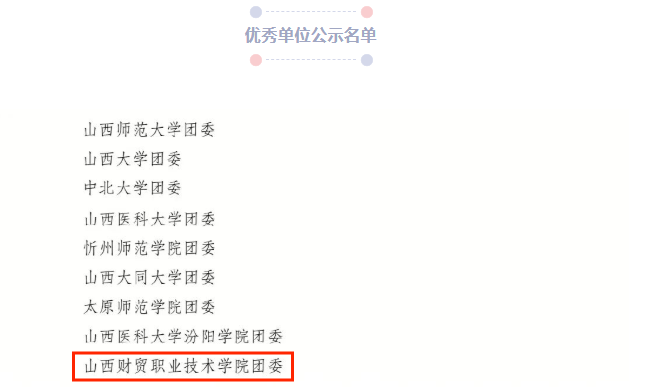近日,共青团中央公布了2022年“三下乡”社会实践优秀单位、团队、个人、品牌项目公示名单,我院团委荣获2022年“三下乡”社会实践“优秀单位”称号,是山西省唯一一所入选全国优秀单位的高职院校。