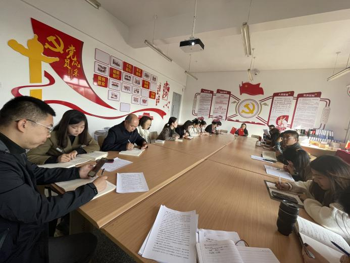 党总支副书记杜玉文领学了党的二十大报告的主要内容。两名教师代表杨兴民、高小阳老师作了表态发言。