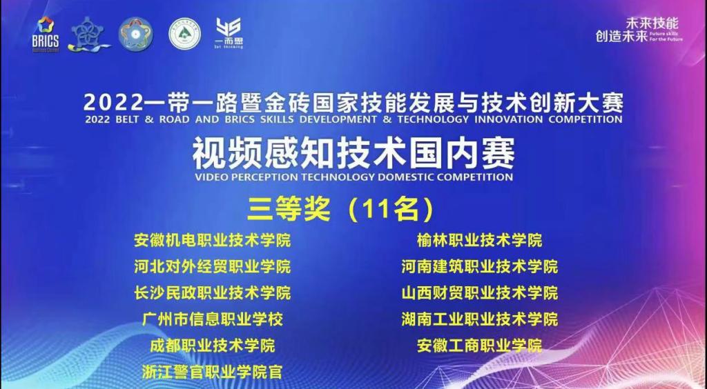 2022年11月5日,我院物联网技术系在“2022一带一路暨金砖国家技能发展与技术创新大赛视频感知技术国内赛”荣获三等奖。比赛在线上进行,物联网技术系孔佳慧同学参赛,物联网技术系教师任丽娟指导。