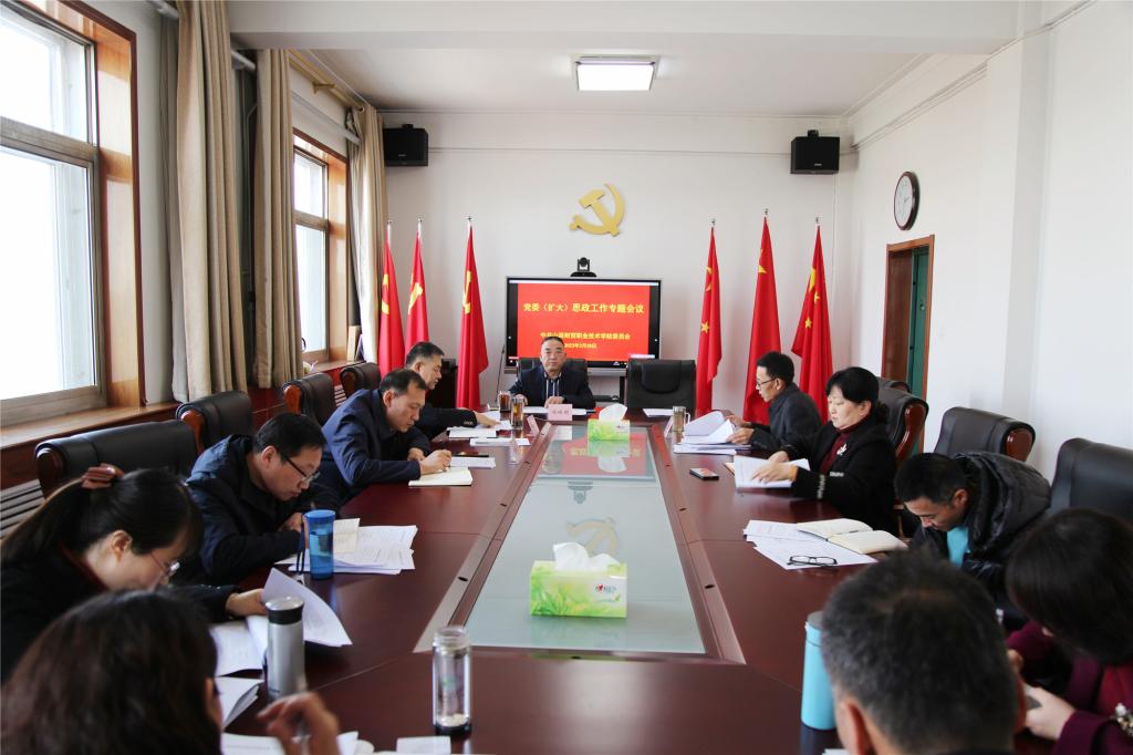 2月28日下午,我院在勤政楼四层会议室召开思想政治工作专题研讨会,分析当前学院思想政治工作面临的新形势,研究部署今后的工作任务,紧扣立德树人根本任务,扎实推进学院党的建设和思想政治工作。全体院领导、各党总支书记以及相关部门负责人参加了会议。会议由党委书记冯瑞明同志主持。