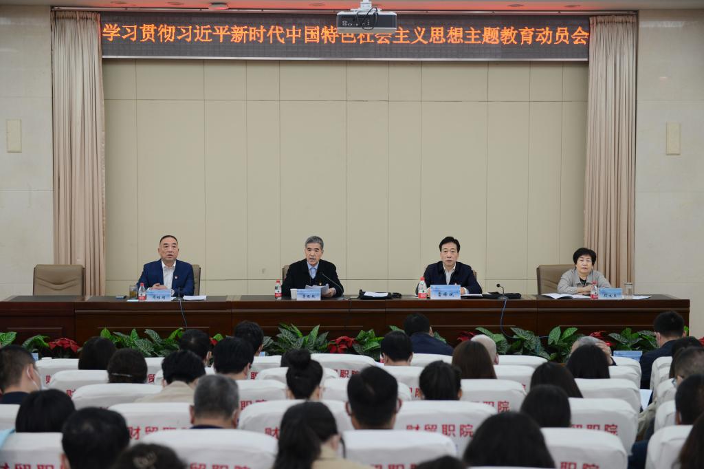 冯瑞明书记在动员讲话中强调,开展好学院主题教育,一要在理论学习、增强党性上下功夫,通过举办读书班、中心组学习会等读原著、学原文、悟原理,带头学、深入学、持久学,深入交流研讨,要站在捍卫“两个确立”、做到“两个维护”的政治高度,切实把思想和行动统一到党中央、省委的决策部署上来,统一到院党委的“五大政治要求”上来,听党话、跟党走、感党恩、讲党情、为党拼,不断提高政治判断力、政治领悟力、政治执行力,立德树人、三全育人、五育并举;二要在调查研究、破解难题上下功夫,牢牢把握“国之大者、教之重者”的战略定位,牢牢确立“全心全意为广大师生服务”的宗旨意识,坚持党的群众路线,直奔问题、困难、落实和服务,坚持深入基层调查研究,聚焦突出问题、重点问题求突破,着力解决师生最关心、最直接、最现实的利益问题,切实解决好师生的操心事、烦心事,亲近师生、联系师生、服务师生,把惠民生、暖民心、顺民意的工作做到师生心坎上;三要在全方位推动、高质量发展上下功夫,推动思想再解放、改革再深入、创新再发力、开放再提质、工作再抓实,准确把握新发展阶段,深入贯彻新发展理念、全力构建新发展格局,切实把学院发展放在全省大局中去理解、去谋划,大力实施“党建双创+教育双高+理论双百”项目建设和“职业教育达标提质”工程,不断提升办学质量,持续深化产教融合和交流合作,高标准落实“十四五”事业发展规划目标任务;四要在检视问题、整治整改上下功夫,坚持边学习、边对照、边检视、边整改,聚焦党中央、省委各项重点任务、重点举措、重要政策、重要要求贯彻落实情况,聚焦学院高质量发展和党的建设重点工作落实中的难点堵点淤点,聚焦“清廉学校”建设中的政治纪律、组织纪律、廉洁纪律、群众纪律、工作纪律、生活纪律的红线和底线,主动担当、勇于负责,全面推进各项重点工作、重点工程问题的解决,切实增强主题教育“含金量”;五要在建章立制、落地见效上下功夫,高度重视、精心组织、周密安排、扎实推进,严格落实主体责任,合理安排节奏进度,力戒形式主义“走过场”,以建设现代化职业院校为目标,以提升治理体系和治理能力现代化水平为要义,以培养“现代红色工匠”为己任,有效激发学院的办学活力、内生动力和发展潜力,确保主题教育形成的长效机制立得住、落得实、行得远。