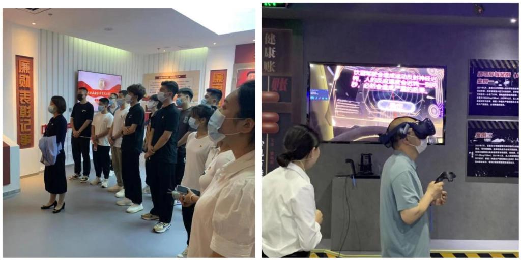 在讲解员的带领下,大家参观了品牌前言厅、廉政教育厅、党风廉政历史厅、智家生活厅、红色名片展示厅、仪式教育厅六个区域,了解了中国传统文化中的廉政思想,重温了中国共产党反腐倡廉的历史,学习了中国共产党各项法规中关于从严治党、党员廉洁自律、党的纪律等知识内容,通过观看视频短片学习了习近平新时代党的建设和党风廉政思想。在廉政教育厅,大家共同观看了警示教育专题片,通过VR虚拟现实系统体验了酒驾醉驾的危险,警醒大家以案为鉴、警钟长鸣、强化约束、遵纪守法。在廉洁知识答题板块,大家积极参与答题,进一步巩固学习内容。