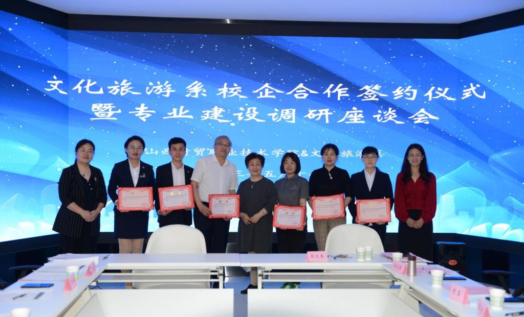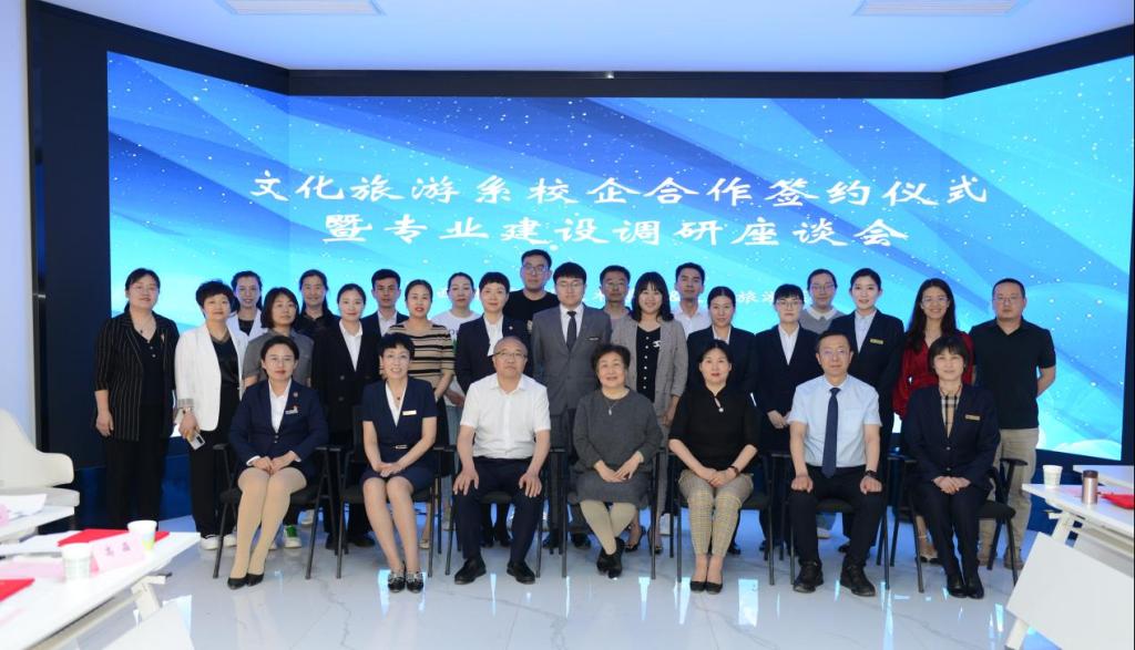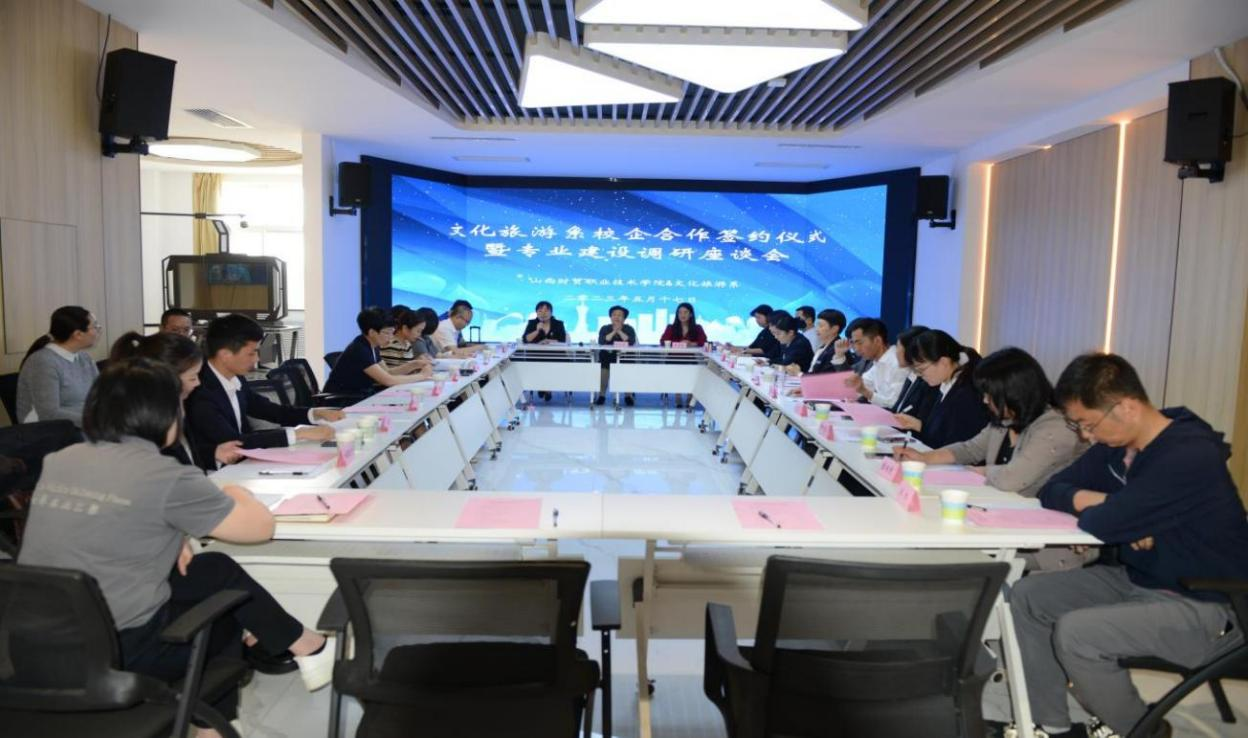 在全党深入开展学习贯彻习近平新时代中国特色社会主义思想主题教育之际,为深入学习贯彻党的二十大精神,创新育人模式,深化教学改革,以高质量调研推动高质量发展,加强校企全面深度融合,实现“专业与产业”“课程内容与职业标准”“教学过程与生产过程”三对接的校企协同育人,5月18日,文化旅游系特邀请旅游、酒店行业专家及优秀企业代表22名,齐聚山西财贸职业技术学院召开文化旅游系校企合作签约仪式暨专业建设调研座谈会。我院院长段文美、专业带头人、组织部部长葛建军及文化旅游系全体教师参加了此次座谈会,本次座谈会由文化旅游系党总支书记马娟主持。