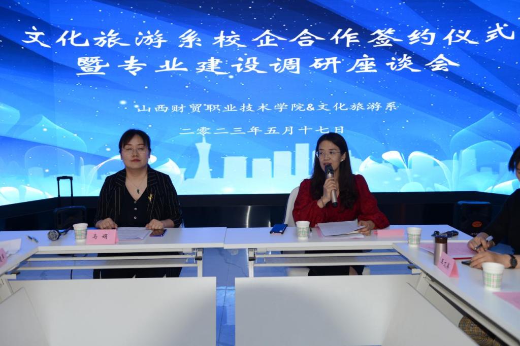 座谈会上,文化旅游系主任王雪娟对文化旅游系旅游管理、酒店管理与数字化运营、智慧旅游技术应用专业建设、人才培养目标、办学特色、人才培养模式等进行了介绍。并表达了向与会单位征求意见建议的意愿。企业代表们对文化旅系人才培养质量给予了高度认可,为专业内涵建设问题积极献计献策,在市场需求前景、专业发展方向、课程设置问题、人才核心能力、校企合作方式等方面提出了有益而中肯的意见和建议。