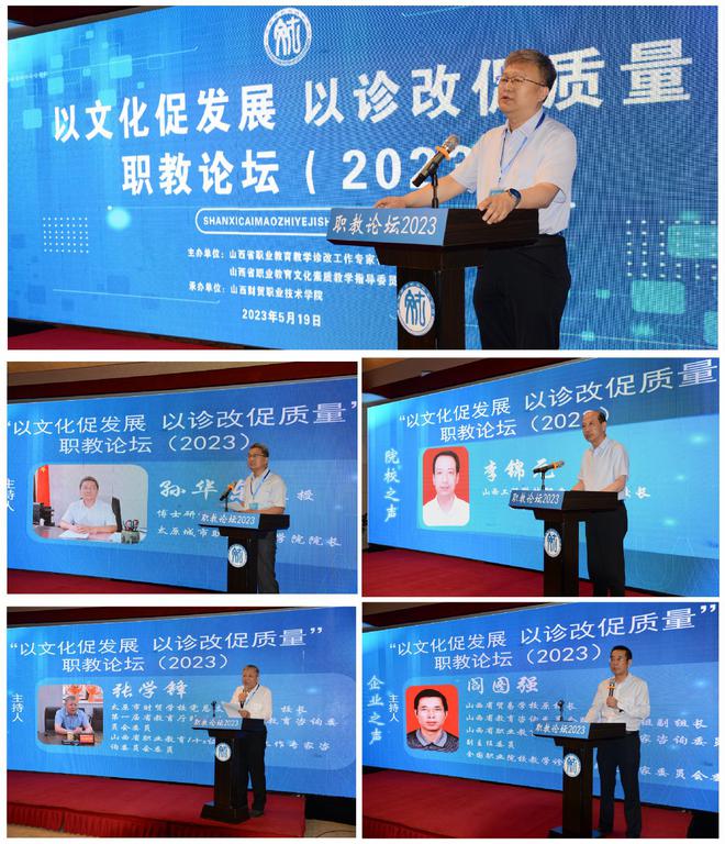 5月19日,由山西省职业教育教学诊改专家咨询委员会、山西省职业教育文化素质教学指导委员会联合主办,山西财贸职业技术学院承办的“以文化促发展 以诊改促质量”职业教育活动周职教论坛在龙城太原隆重举行。来自省内外20余所职业院校、合作企业近80名代表齐聚一堂,共同聆听专家观点、分享办学经验、共商共议推进山西省职业院校教学诊改、提升文化素质教育之举措,为推动山西省职业教育高质量发展献言献策。职教论坛分为开幕式、专家之声、院校之声、企业之声四个环节,省委教育工委委员、省教育厅副厅长王东出席开幕式并讲话。